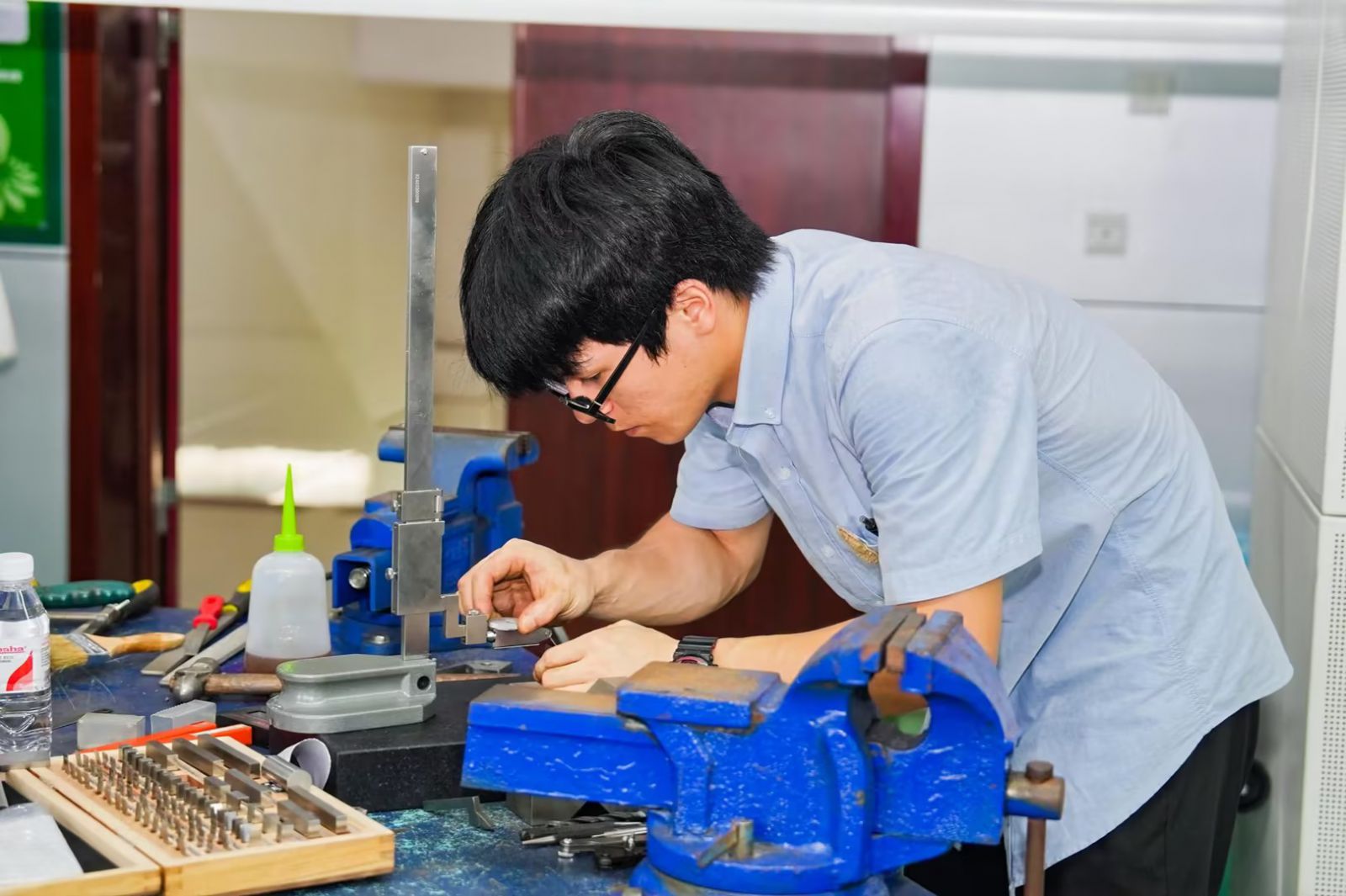 劳英慧在比赛过程中不仅展现了精细的手工技艺,更体现出对设备装配流程的深刻理解和对复杂问题的快速解决能力。他对每个细节的严谨把控和对高质量标准的追求,成为了他在众多参赛者中脱颖而出的关键因素。