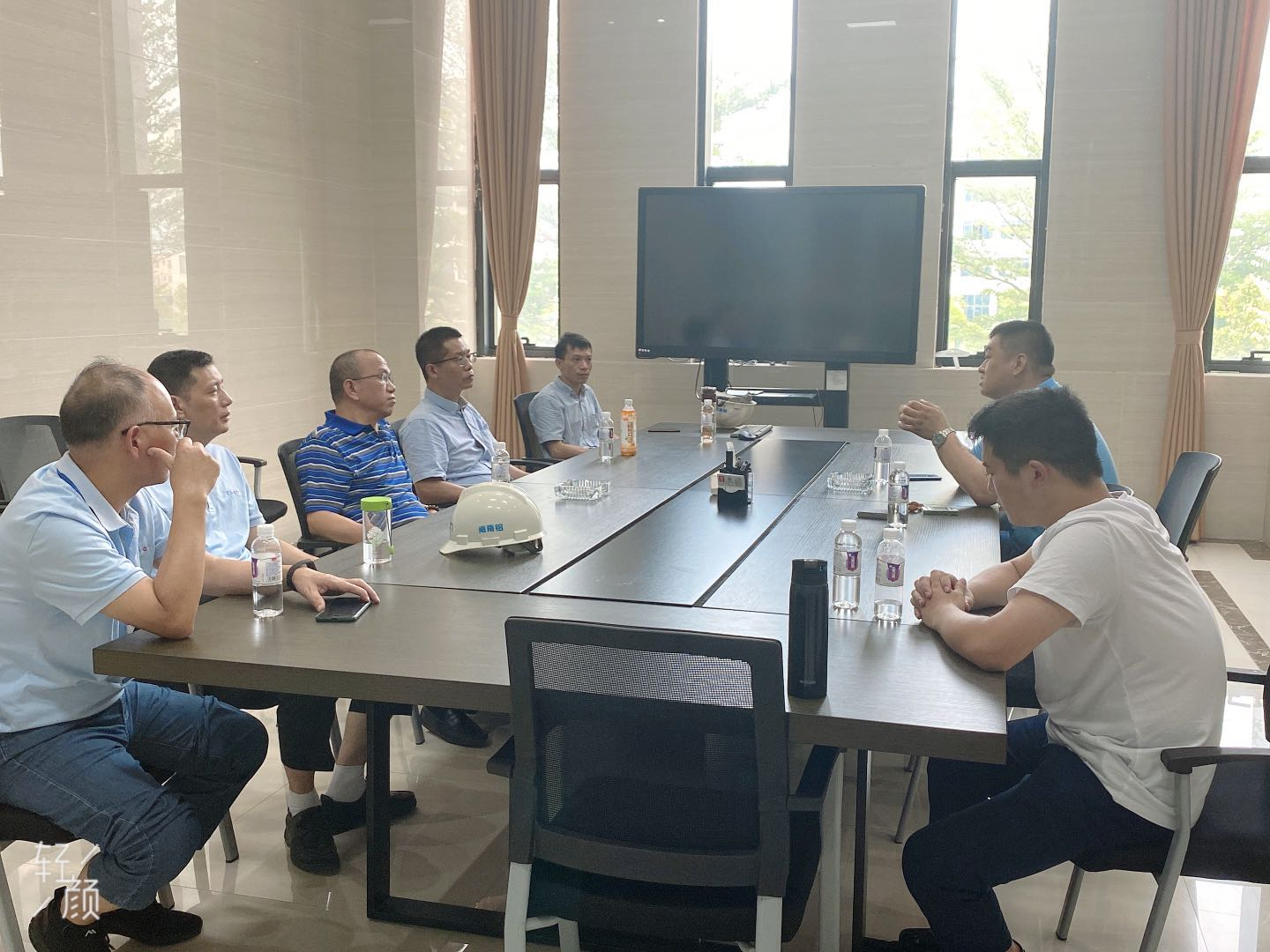 考察中,集团总经理唐永兵与海尔公司高博部长一行举行了座谈。据唐永兵介绍,在面临新冠肺炎疫情,南南铝在国内高表面铝装饰件市场冲破疫情重围,电子(电器)铝合金装饰零部件产品销售取得喜人业绩。今年6月份,边框面板产品销售势头良好,7月份在手订单36万件,销售产量高达200吨,创今年出单月接单亮新高,今年上半年铝合金装饰零部件产品销量同比增长了50%。